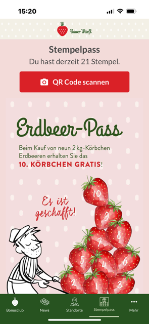Die papierhaften Erdbeerpässe sterben aus. Neue gibt es keine mehr. Es wäre schön, wenn die Stempel des papierhaften Passes in die App übertragen werden können. Wenn dies erfolgt ist, Pass entwerten und ans Saisonbüro schicken.