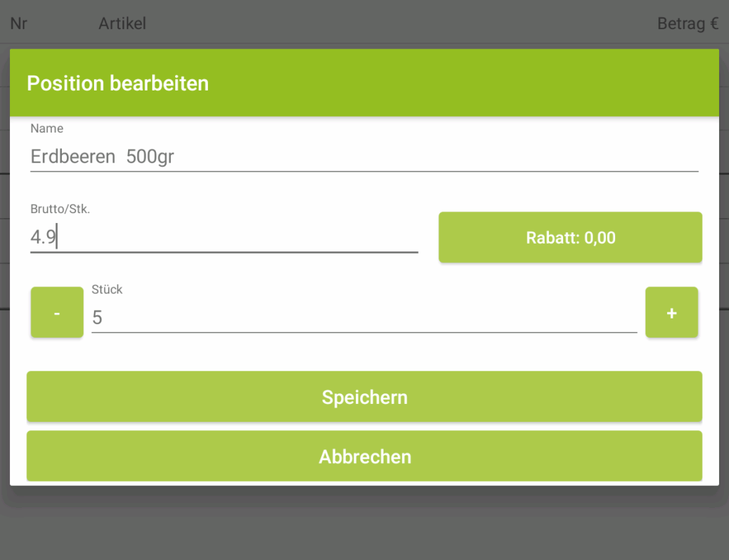 Falls einmal ein Gastro-Betrieb direkt vom Stand kaufen möchte, müssen Sie vor Ort die Berechtigung prüfen. Bei Kassandro gibt es die Rabattfunktion. Hier können die 20% eingegeben werden.